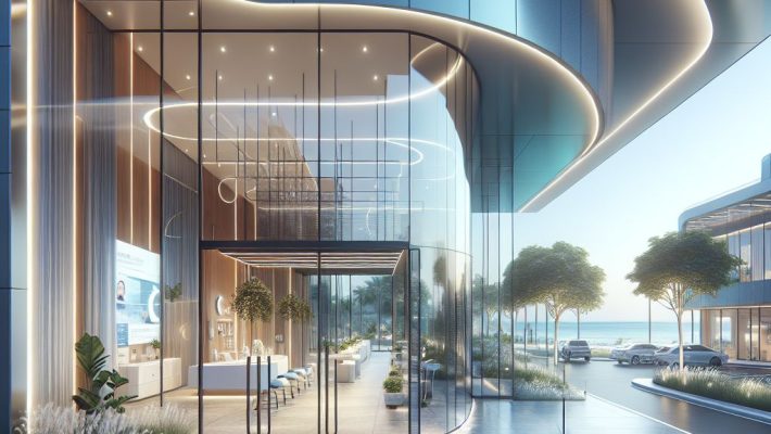 Kestel Alanya Polikliniği entrance showcasing modern architecture
